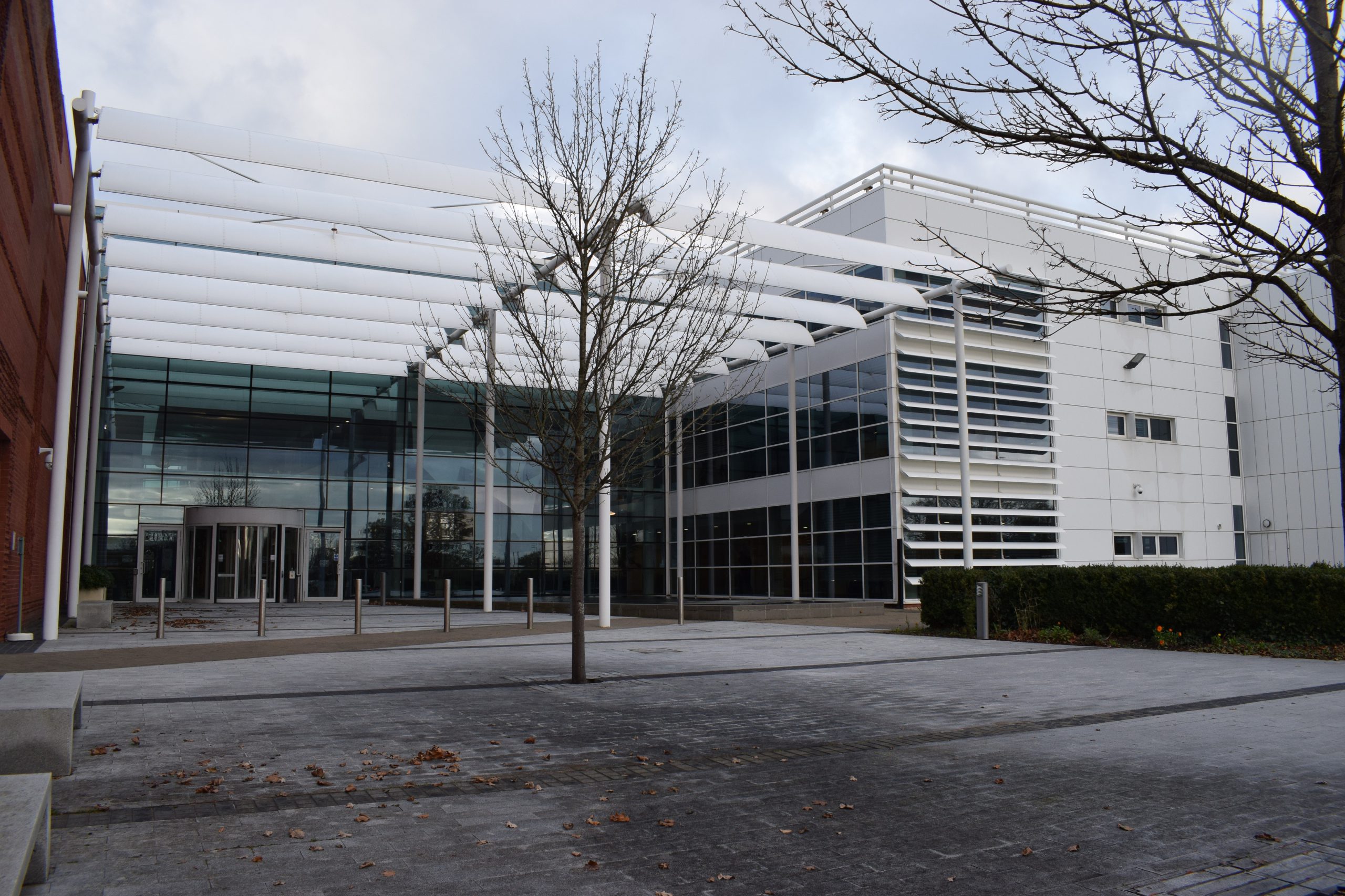 The building comprises open plan office space over four floors, data centre, plant rooms, roof space, and lecture theatre.